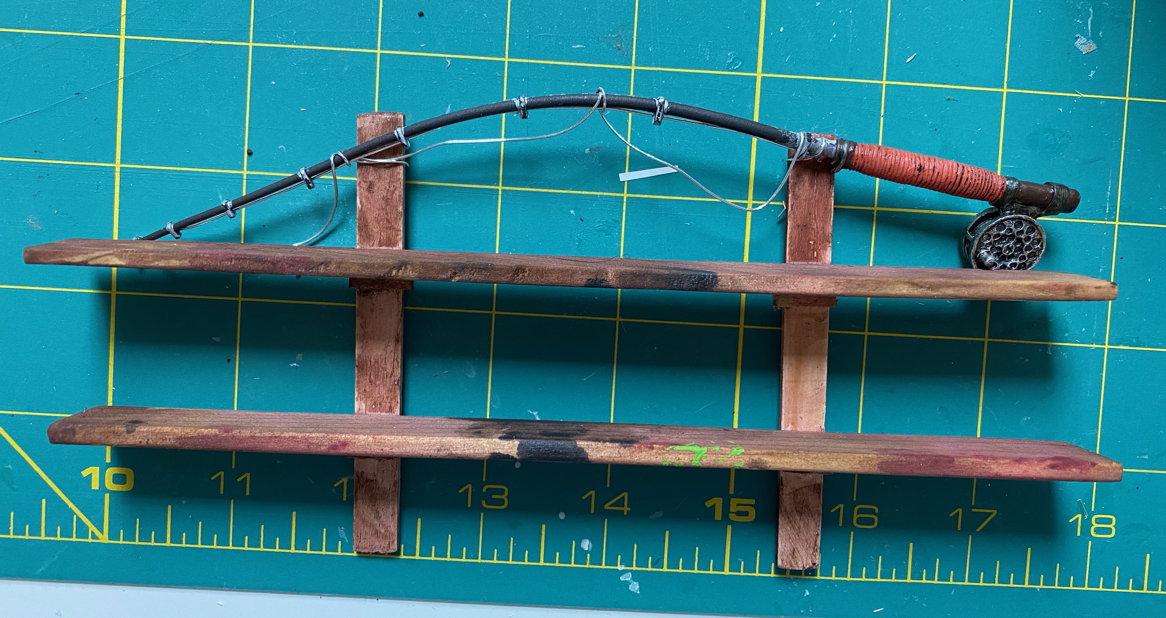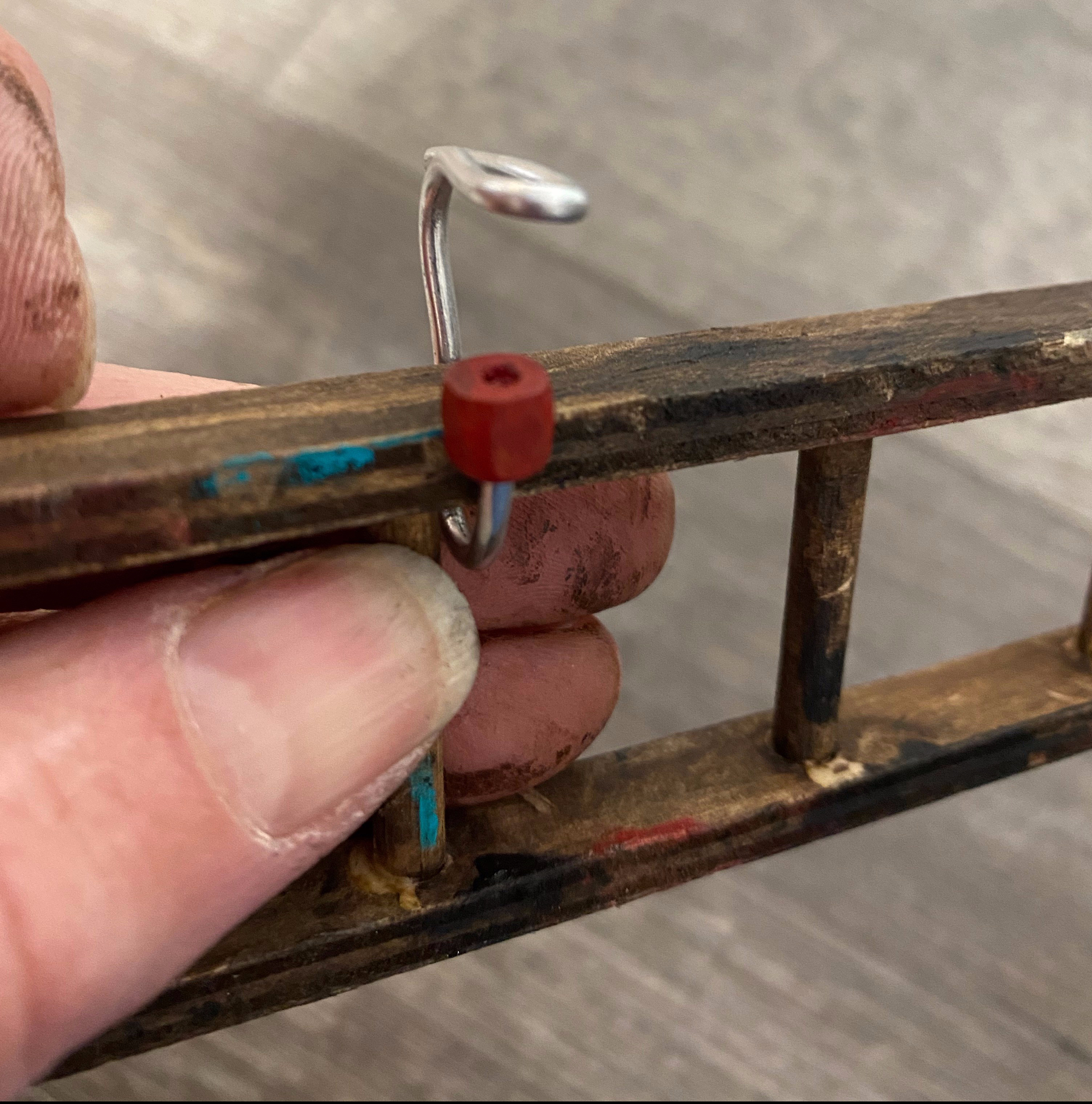 I also made a ladder and hooks to hang it on and fastened that to the wall below the shelves.