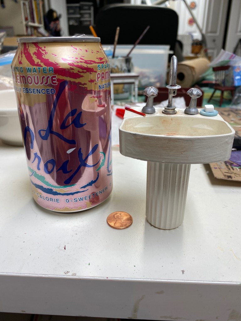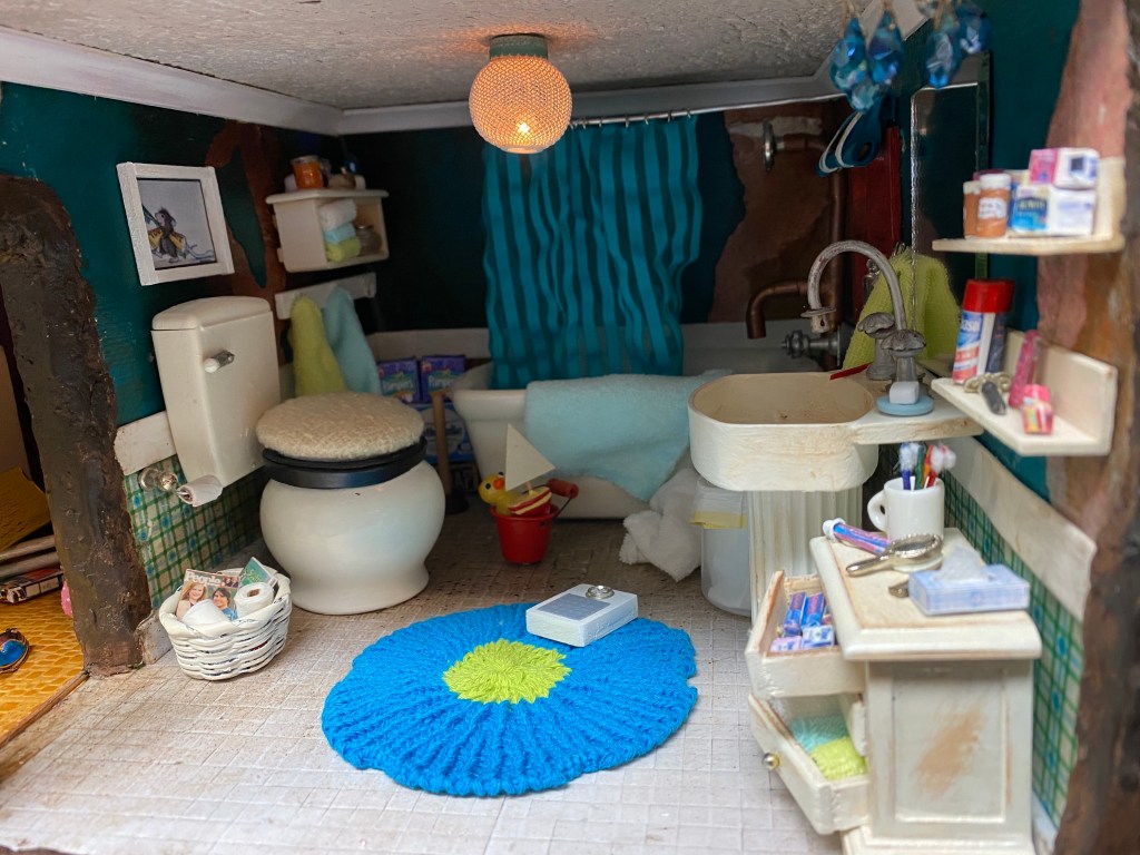 I’ve worked on the various components of the Mouse House bathroom over time. Almost everything in the room was a piece I constructed with stuff around my own house.