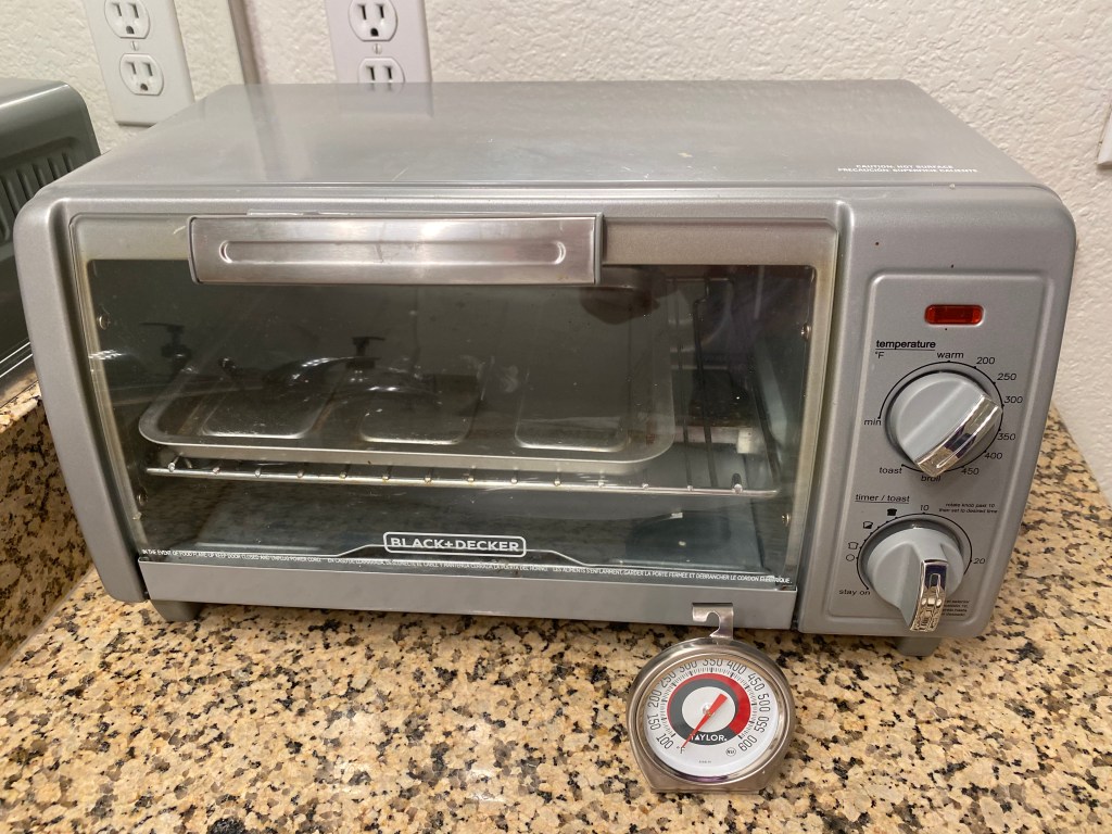 I use a dedicated toaster oven to bake my clay pieces. Everything I’ve read says it’s safe to use a regular oven, but I am overly cautious in our apartment so I set this up in the guest bathroom and use the exhaust fan when baking so fumes don’t permeate the rest of our place. I bought this toaster oven for $10 at the local Goodwill.