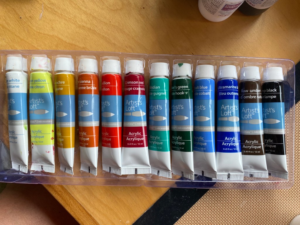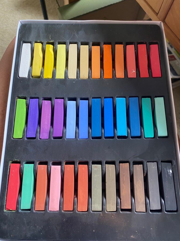 I add color to pieces with chalks, pastels and acrylic paint. The brands I use are inexpensive and easily available. (Add paintbrushes to your shopping list as well as they work the best for applying the colors.)